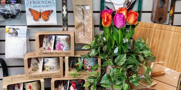 We have a range of gift options such as tea sets, baskets, soaps, wind chimes and suncatchers, vases and pottery, stuffed animals, and more!